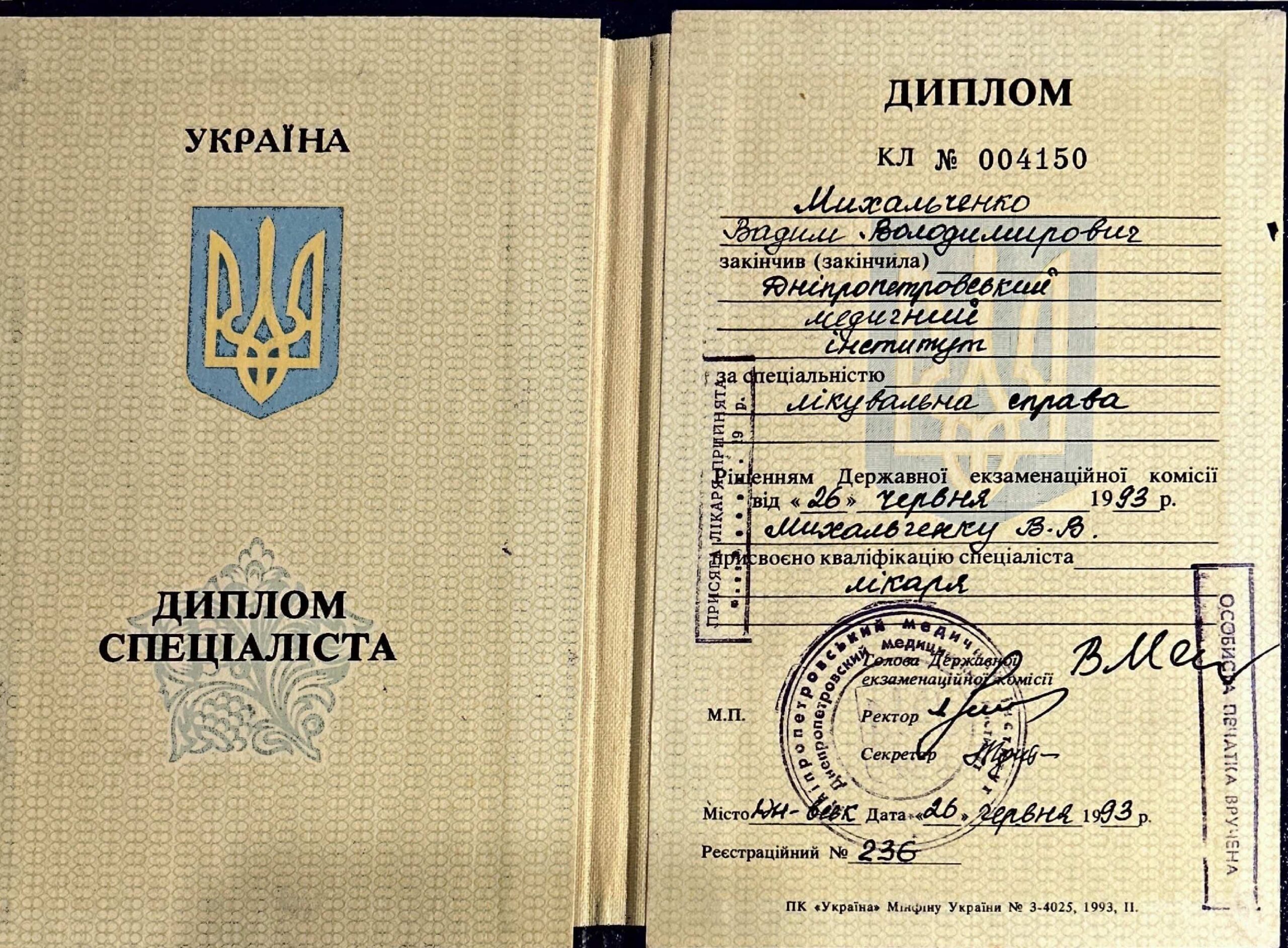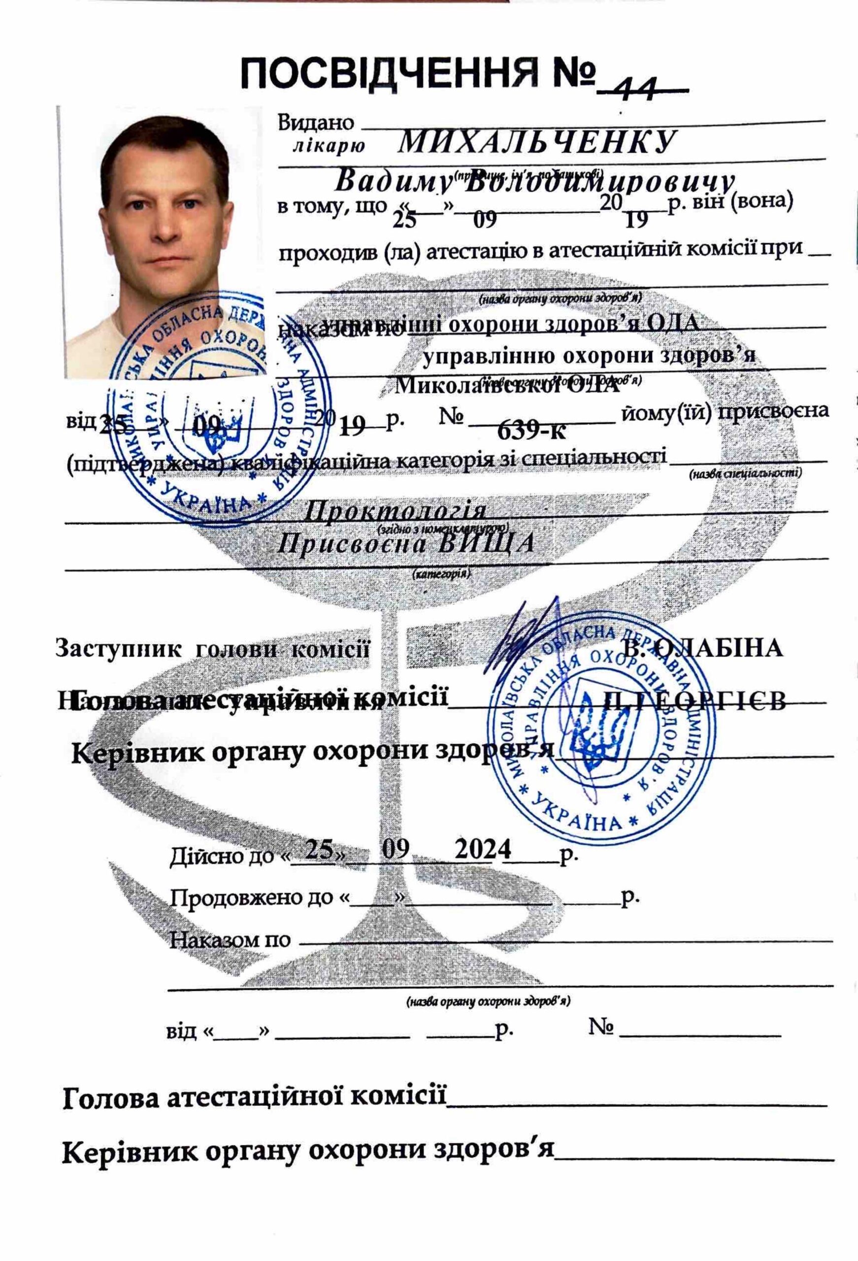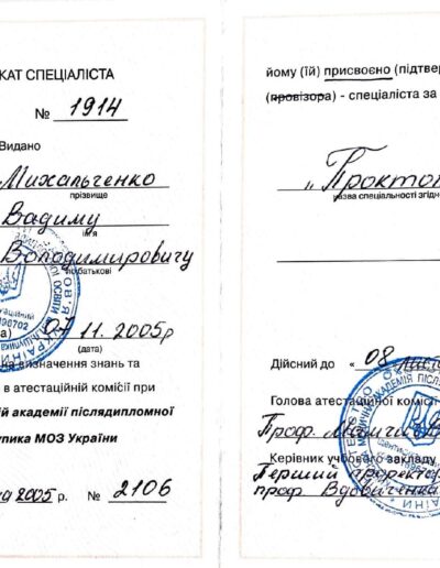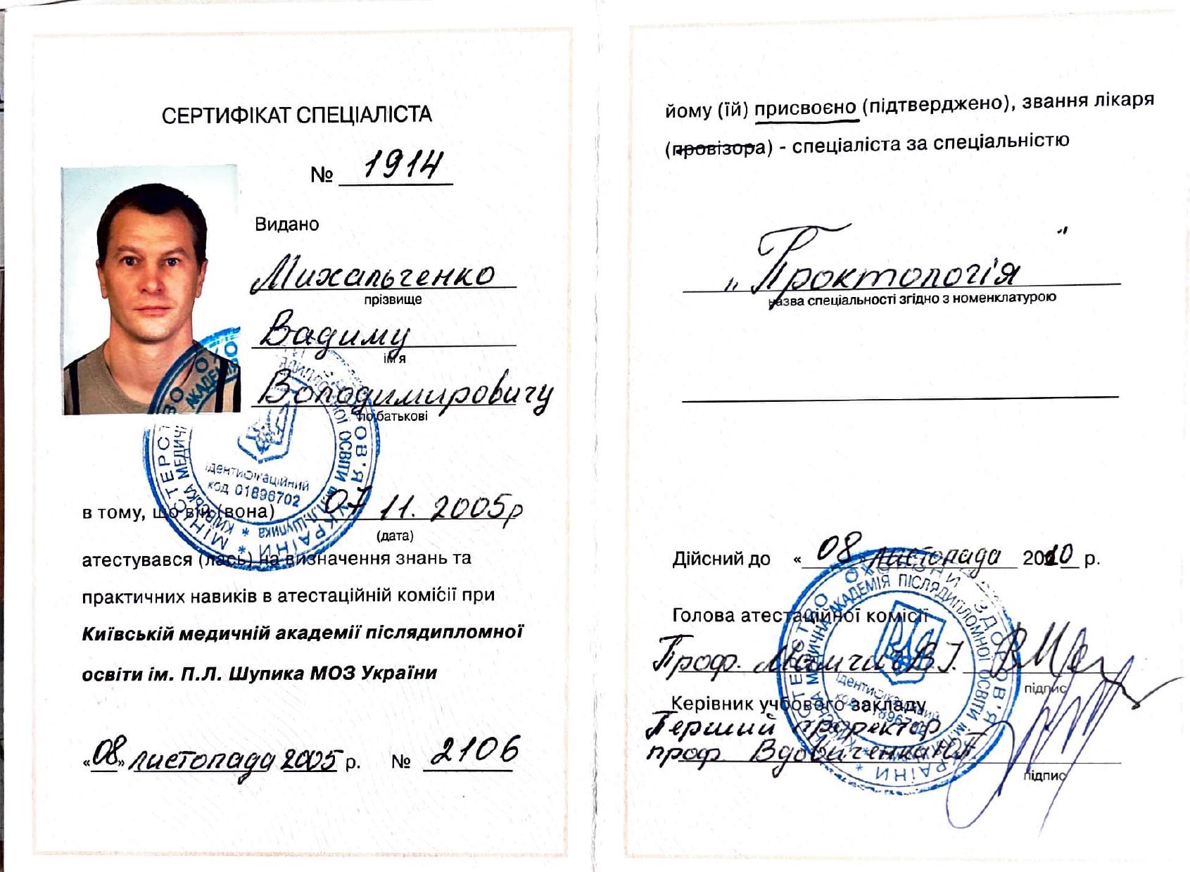Врач проктолог Михальченко Вадим Владимирович