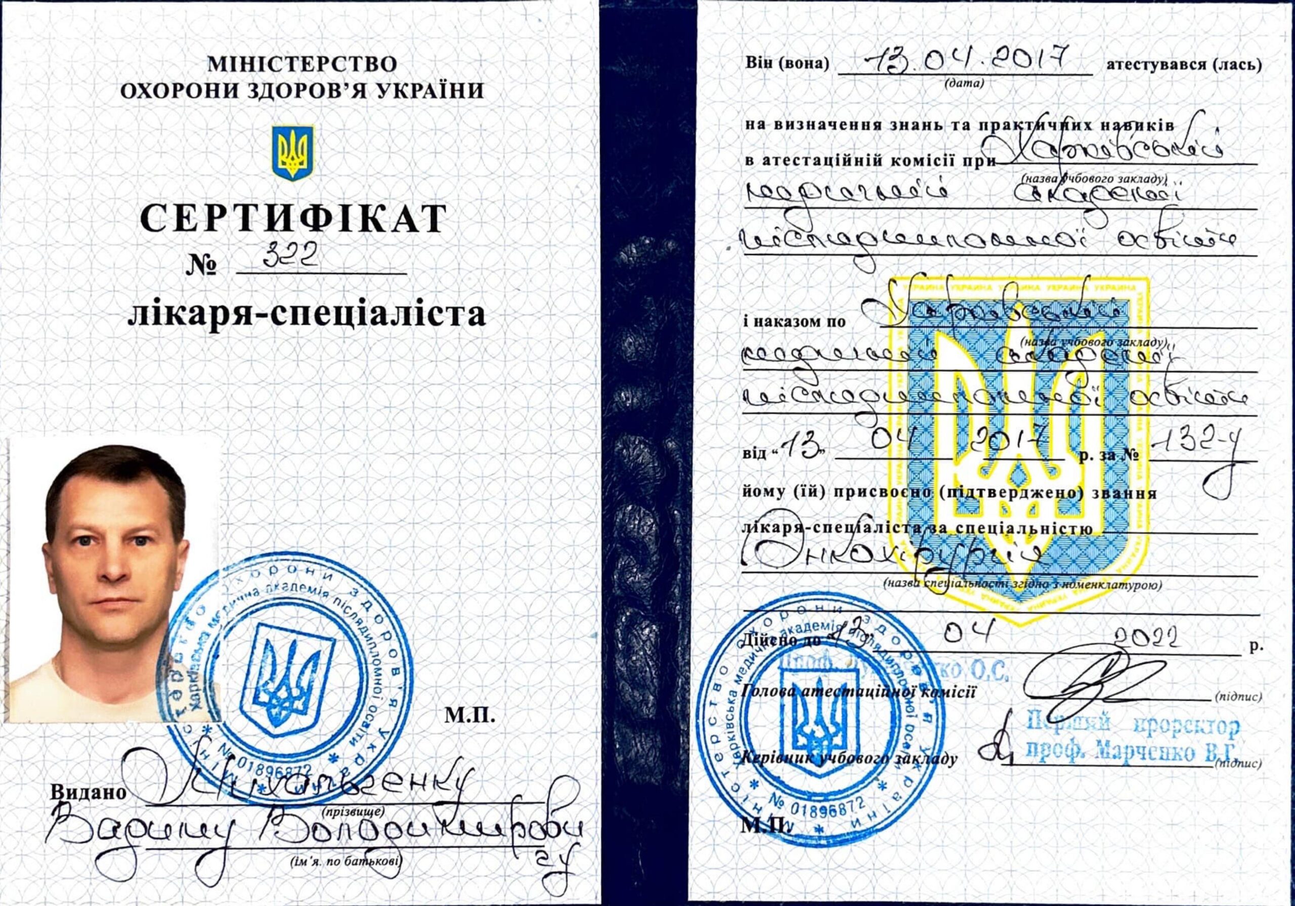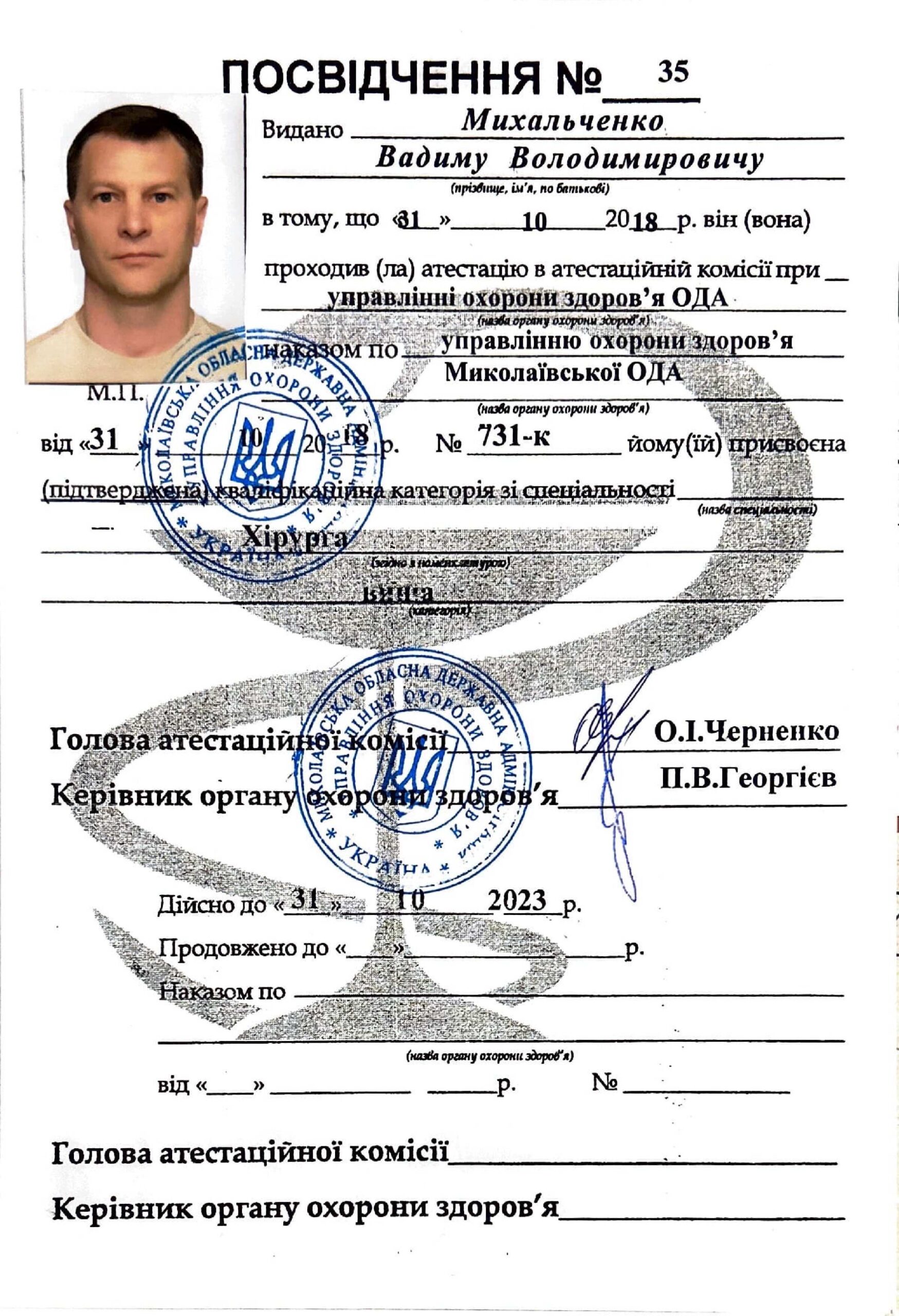 Квалификация врач хирург высшей категории